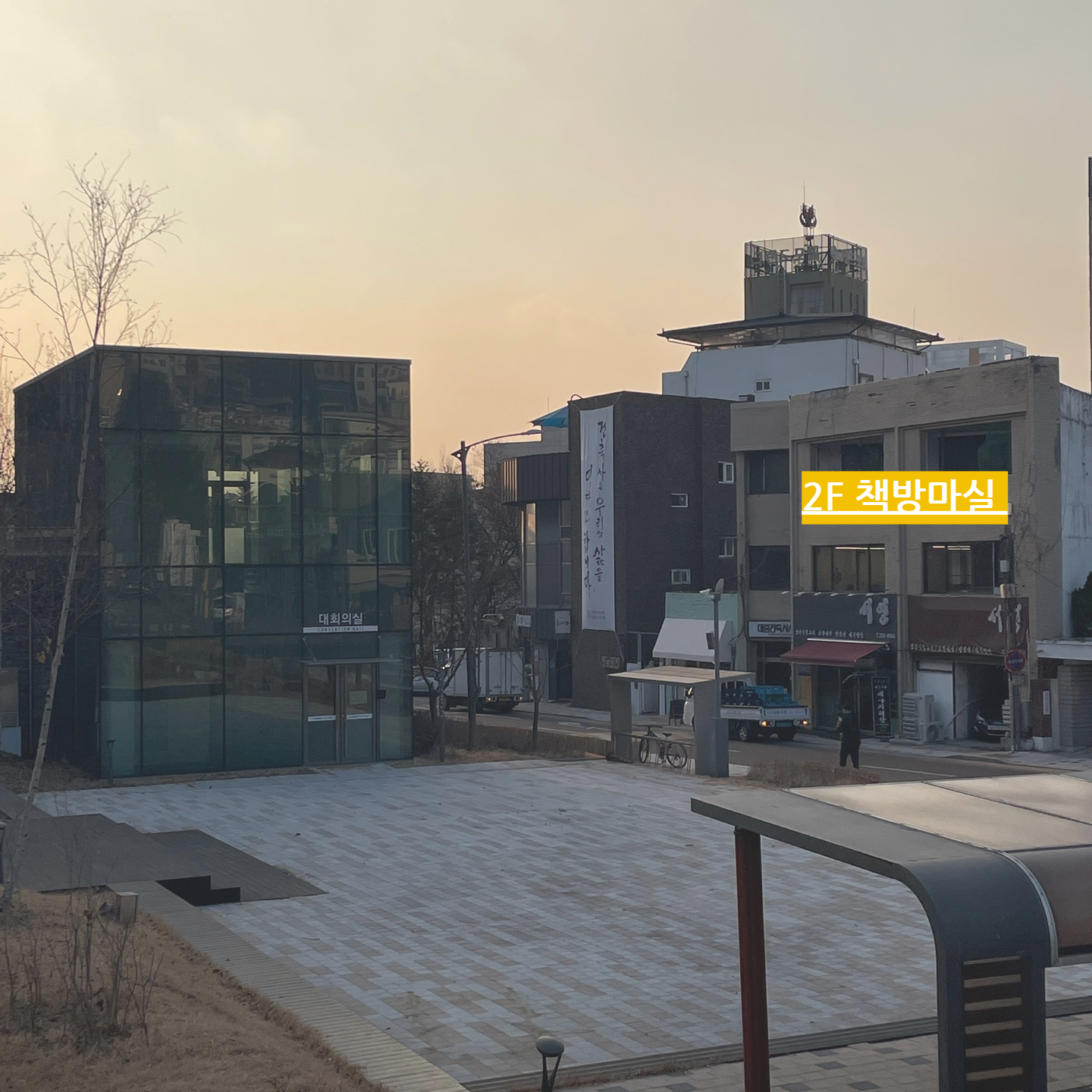 2층의 책방 마실로 올라가다 보면 보이는 아크릴 간판.