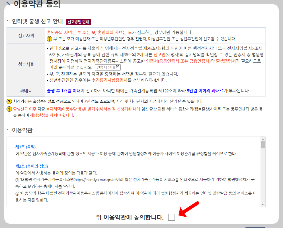 4. 다음 화면에서 이용약관에 동의한 뒤 다음 단계로 넘어갑니다.