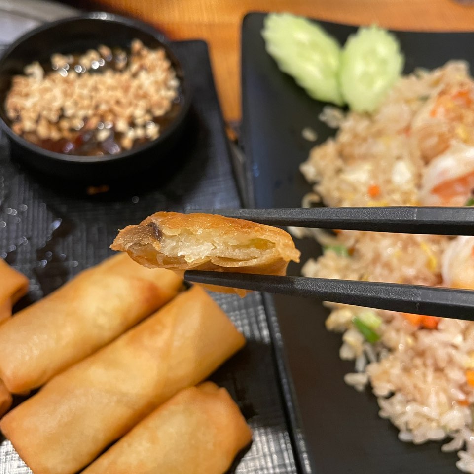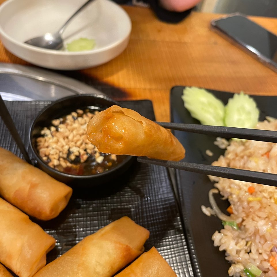 스프링 롤. 스프링롤은 베트남에서 본 것 같고, 동남아권에서 여러 재료로 속이 채워지는 음식인 것 같은데 여기서는 뭐가 들어갔는지 잘 모르겠지만 일단 맛있었다. 갓 나온 음식이라 따듯하고 바삭한 피 안에 고구마?인지 약간의 달콤한 맛이 났다. 함께 내어주시는 땅콩견과와 칠리소스를 찍어먹으면 식감과 맛이 배가 되었다.